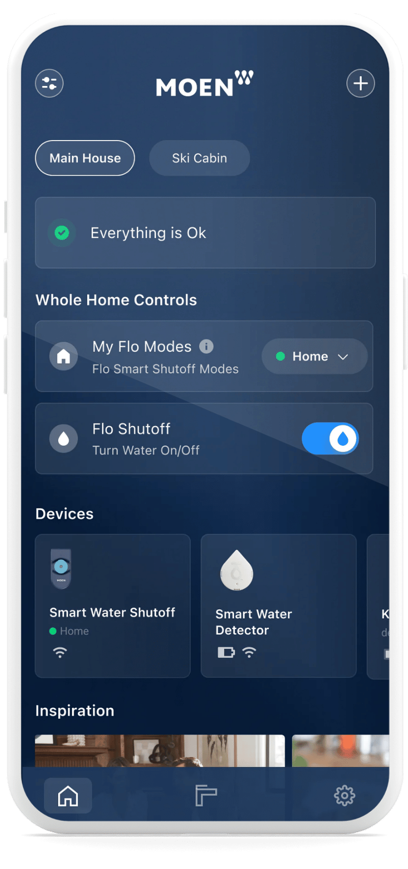 Monitor and control your water from your smartphone — even if you’re a world away — with the Moen Smart Water App.